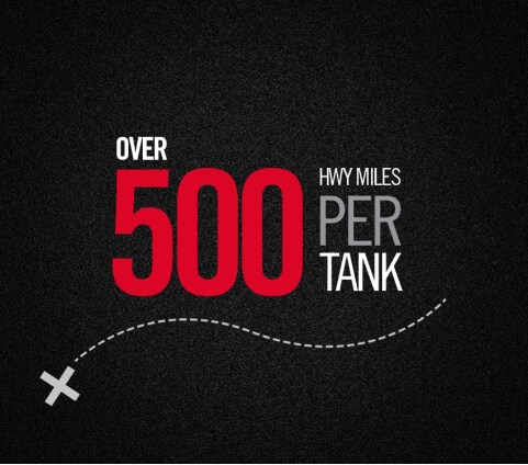 |  EXCITEMENT FOR MILESA powerful engine is at the heart of every road trip machine. And it just so happens that we've got miles and miles of heart, with over 500 highway miles per tank (17). Whether or not you blast power ballads with the windows down is up to you. |   |